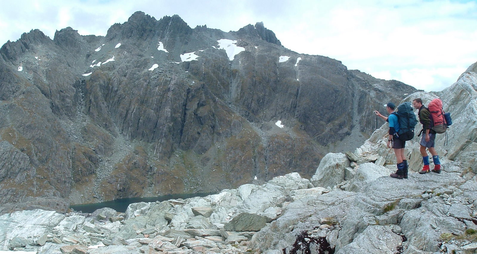 Day 1: Start at the Routeburn Shelter over Sugarloaf Pass, descend into Rock Burn, camp at Theatre Flat.