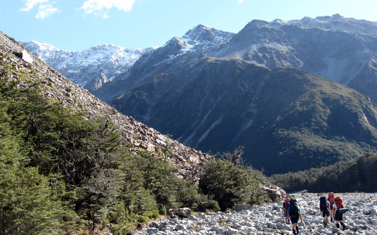 April arrived and we agreed it would be OK to head out for a short walk close to Christchurch. We would walk up the Waimakariri river past the Carrington hut, then up the White river to Barker hut.