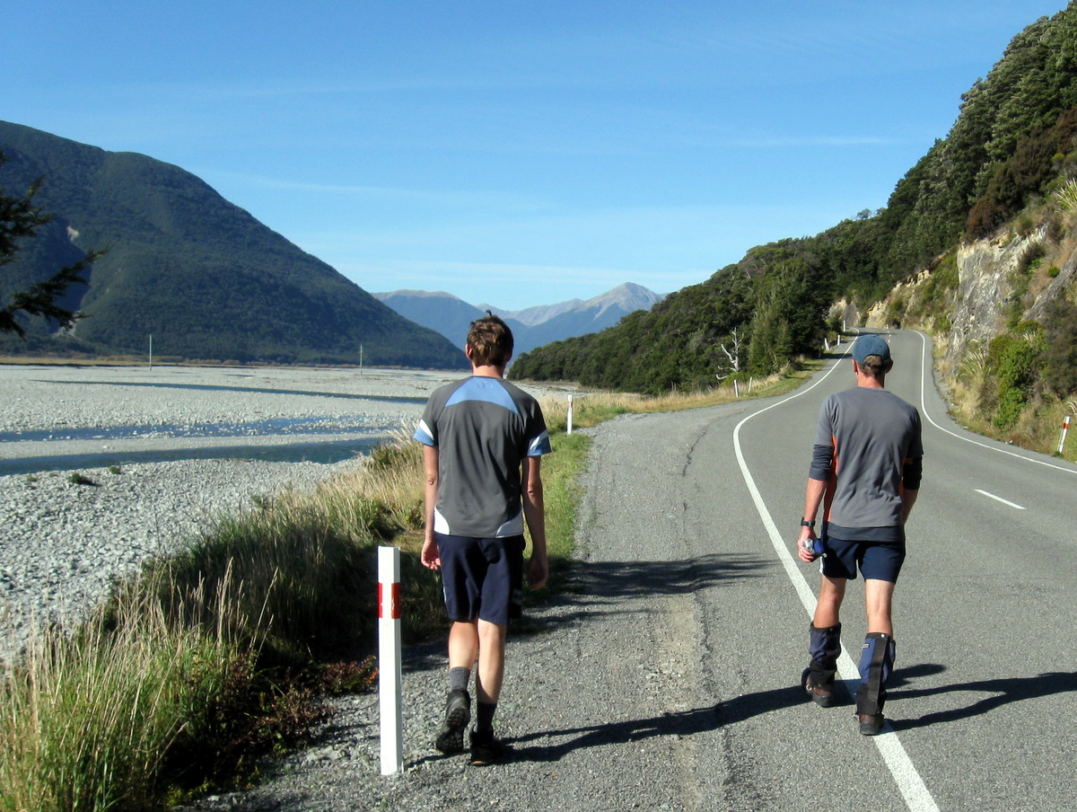 The walk out to the car was an easy stroll and we were dropping packs beside the car by early afternoon.  Chris and Paul headed over to Otira to fetch the other car we had left at that end.  Rather than stay and be consumed by sandflies, Magnus, Adam, Richard and Lewis started wandering up the 4WD track to the road.  By the time Paul and Chris completed their return trip and caught them up, they were in the Bealey Pub a few km up the road ordering the first round of beers.