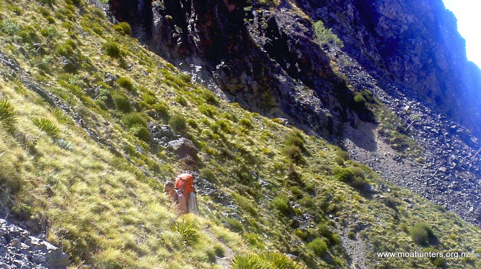 Ascending through rock and low tussock