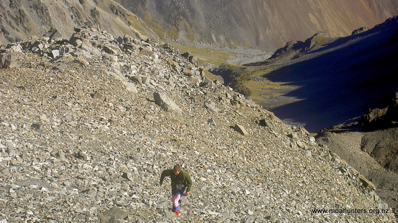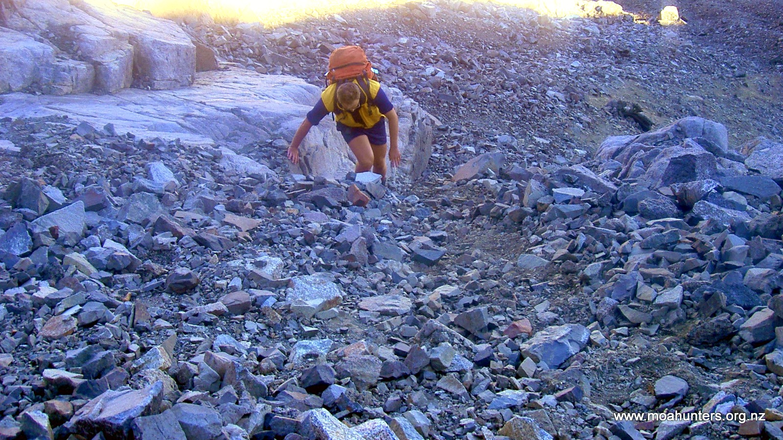 Chris grunting up a steep rocky slope