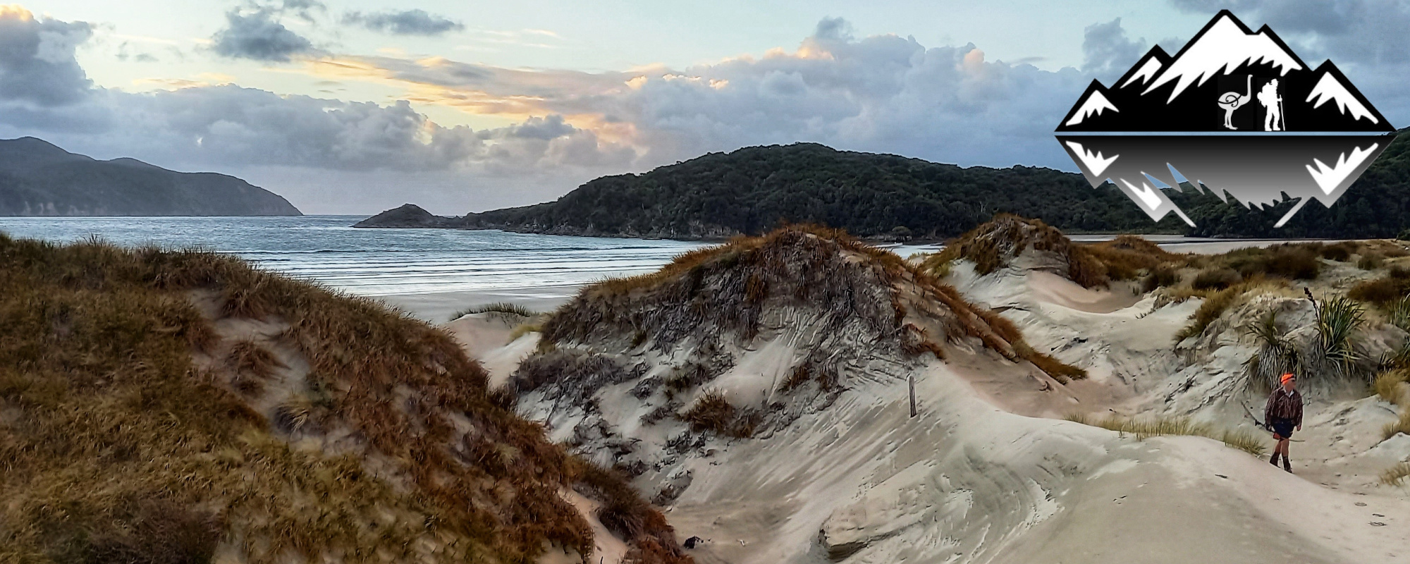 About an hour was spent lying on the sand in the dunes until the weather started to look sketchy. Dark clouds were gathering at the head of the bay. Some Moa Hunters made the dash back to the hut in time. Others got rather wet on their return as a squally and heavy downpour swept into the bay.