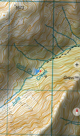 Descend the final steep part from the bluff into the main Julia Creek valley floor. If you are running to time, this is the perfect spot to stop, take the boots off, rest the feet and knees from all the descending and enjoy lunch as the steep section is now complete.