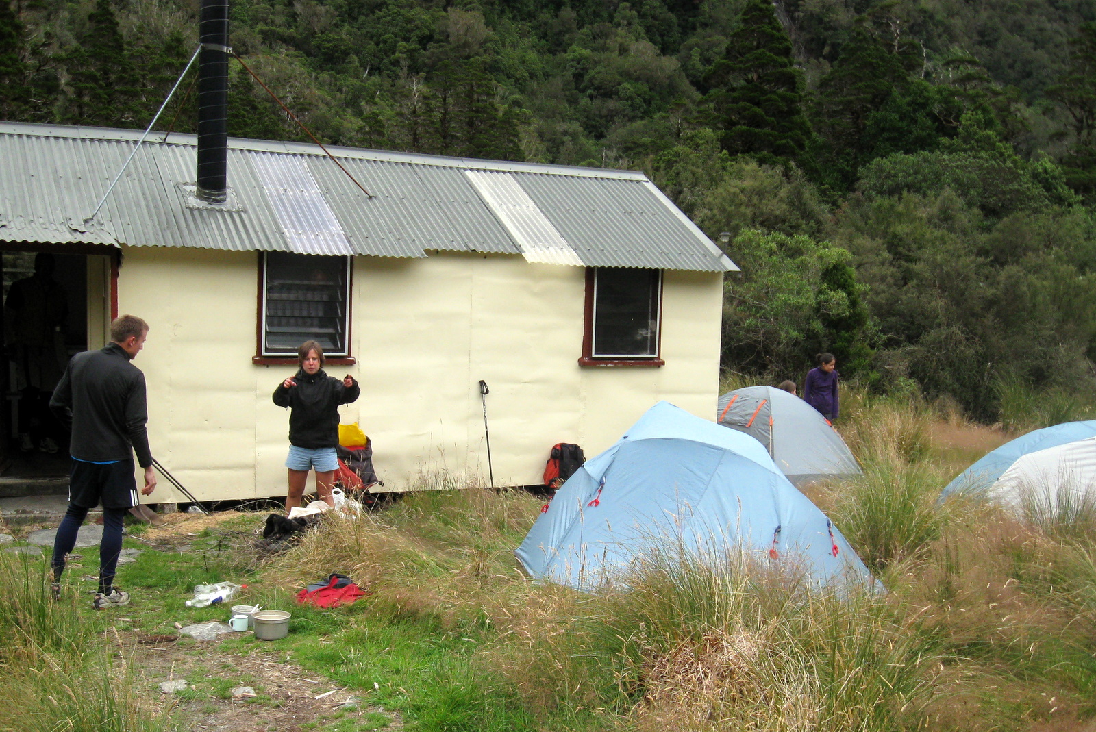 Reaching the Young Hut earlier than expected was a pleasant relief. The newly built hut isn’t as far up the valley as the original one which was marked on our map. The chance to ditch jackets, have a laugh and relax after a very damp day of walking was most welcome.