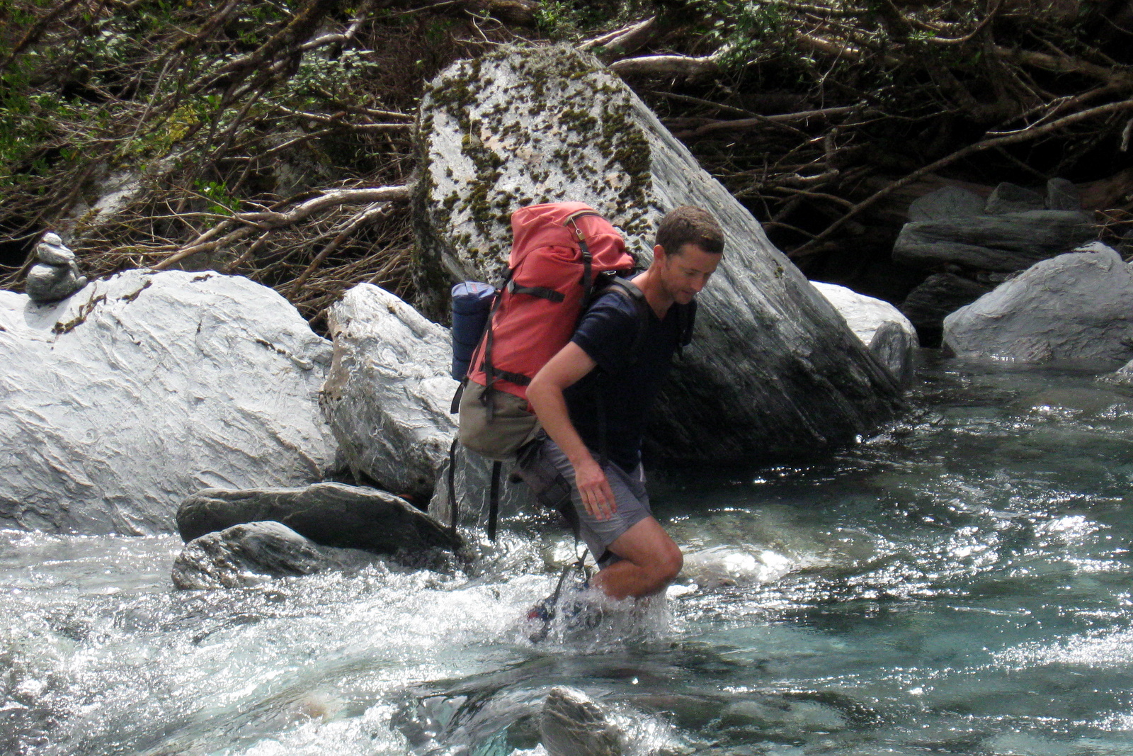There were numerous small creeks to rock hop across along the way. Well, unless your name is Chris. In which case you avoid the rocks and plunge in boots and all at the first opportunity. “It doesn’t feel like real tramping if my feet are dry,” he assured us.
