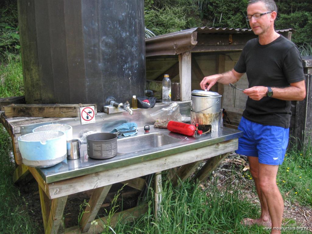 Grant and Herbie arrived at the hut around 5:00pm. We offered them some hot water for a cuppa and left them space to get settled in.