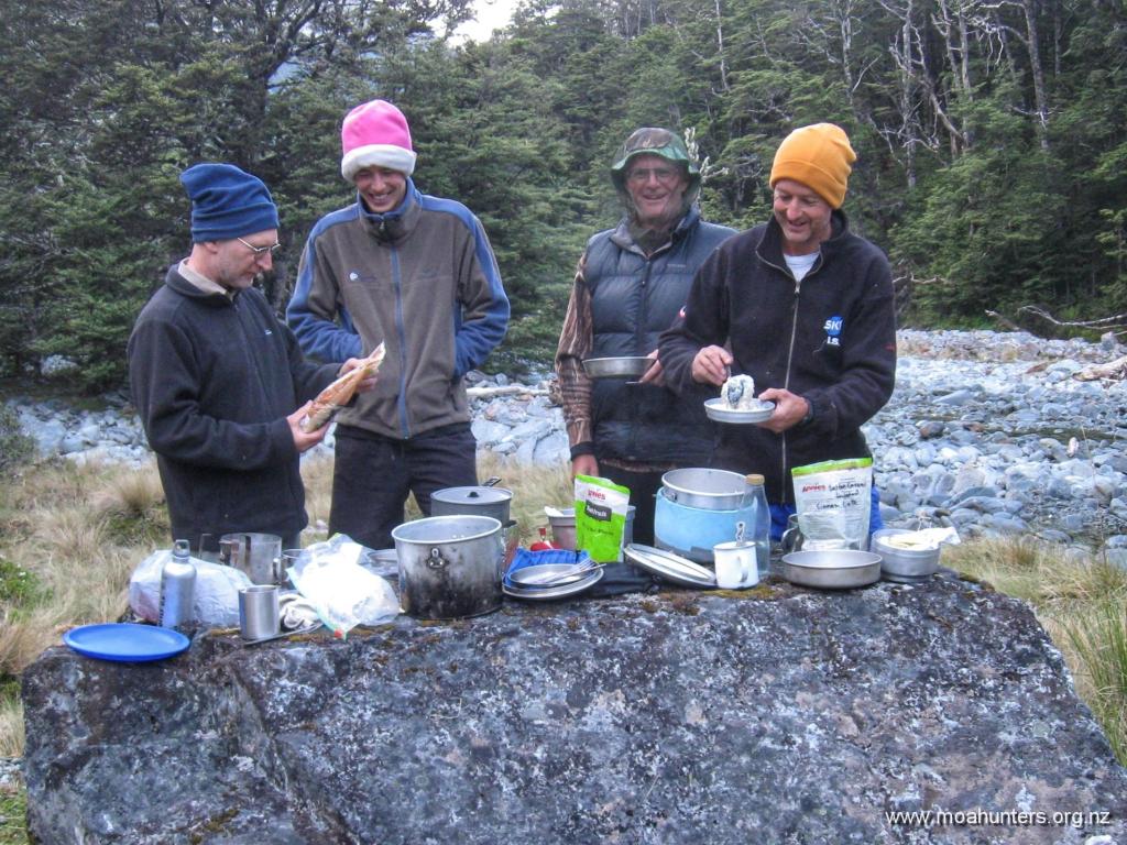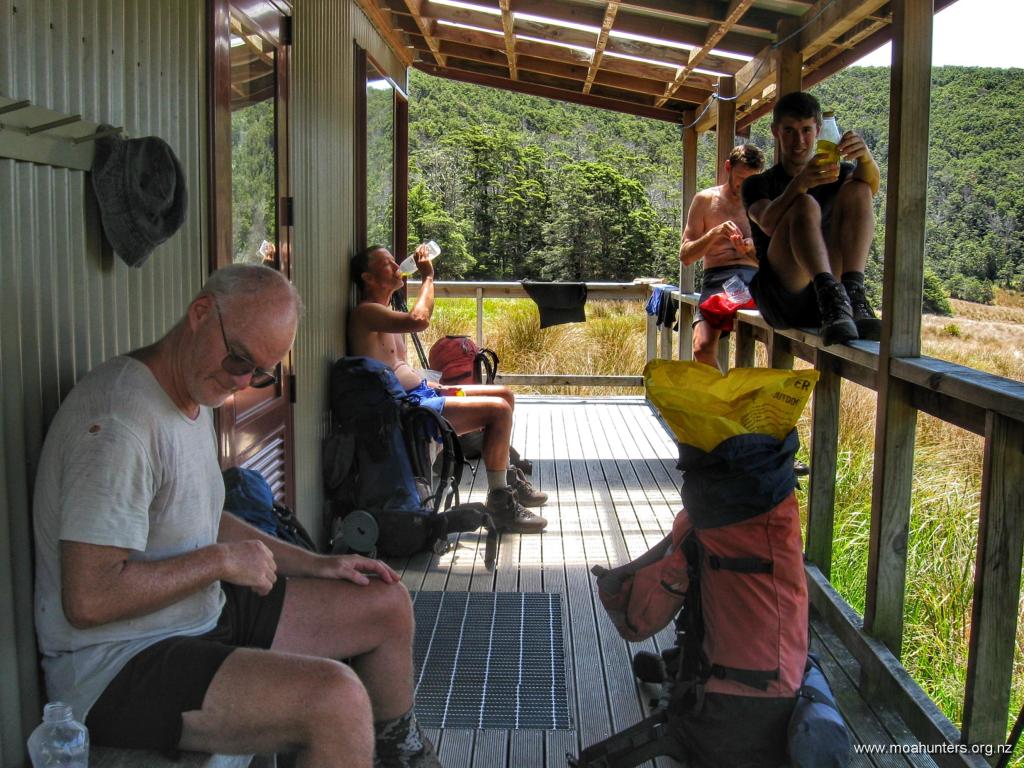 By 3:00pm however, our stomachs finally informed us we had earned a proper feed. The moa men congregated inside the spacious John Tait hut for lunch, enjoying a well earned break.