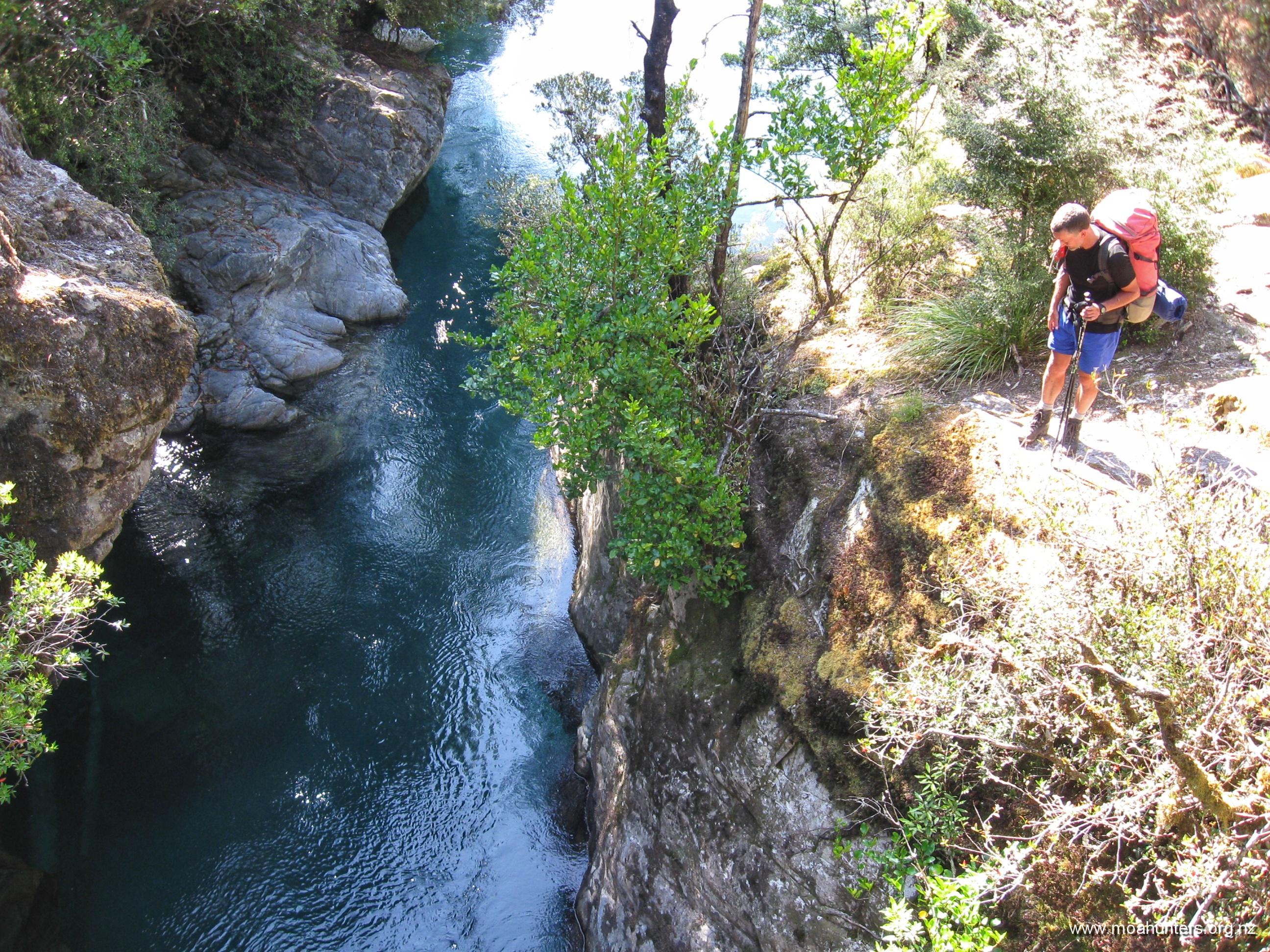 Between the bridge and George Lyon hut, there is a fifteen minute section where the valley gets quite tight and the track a bit harder going. Aside from that, it is a pleasant wander to the hut.
