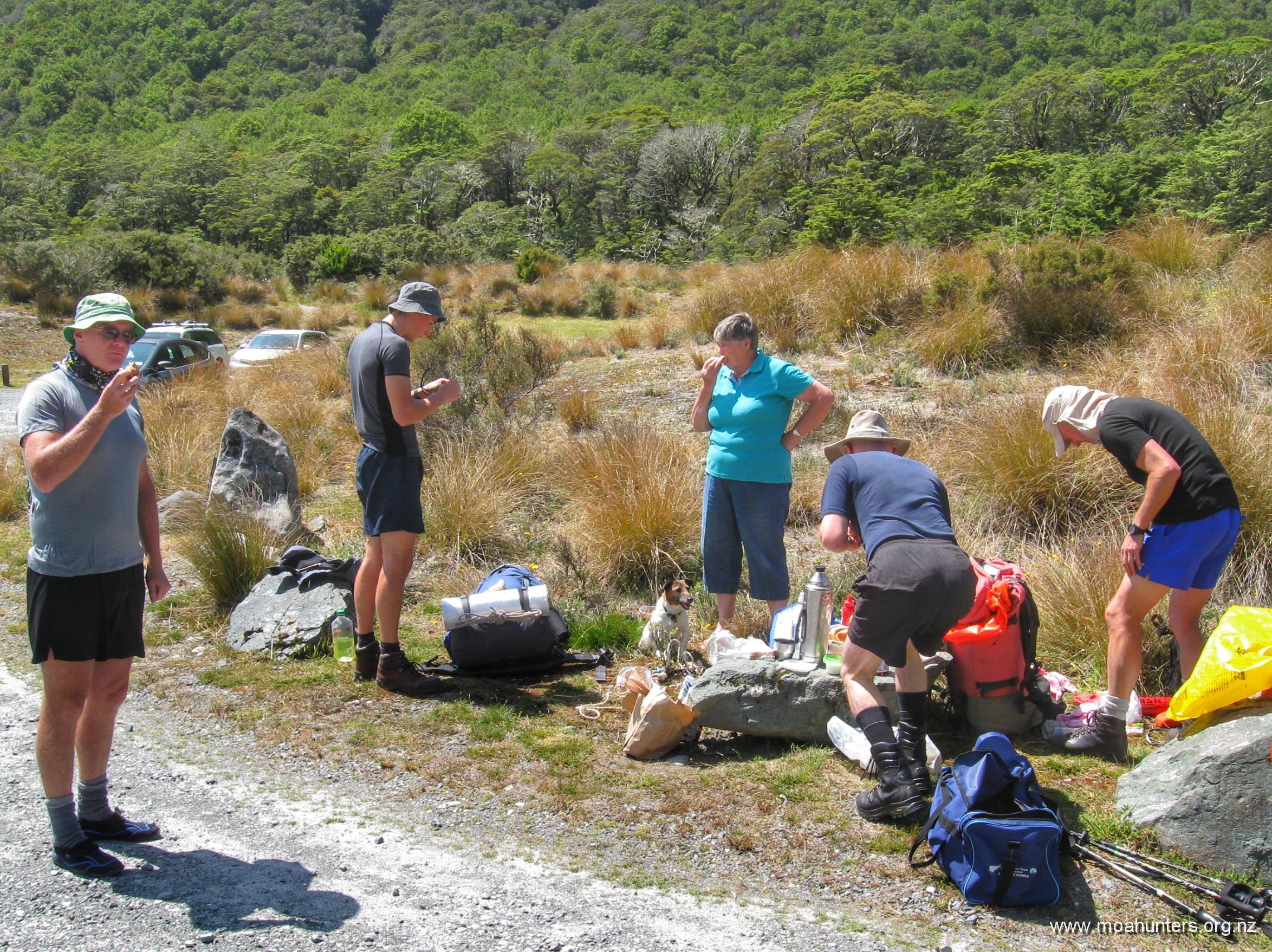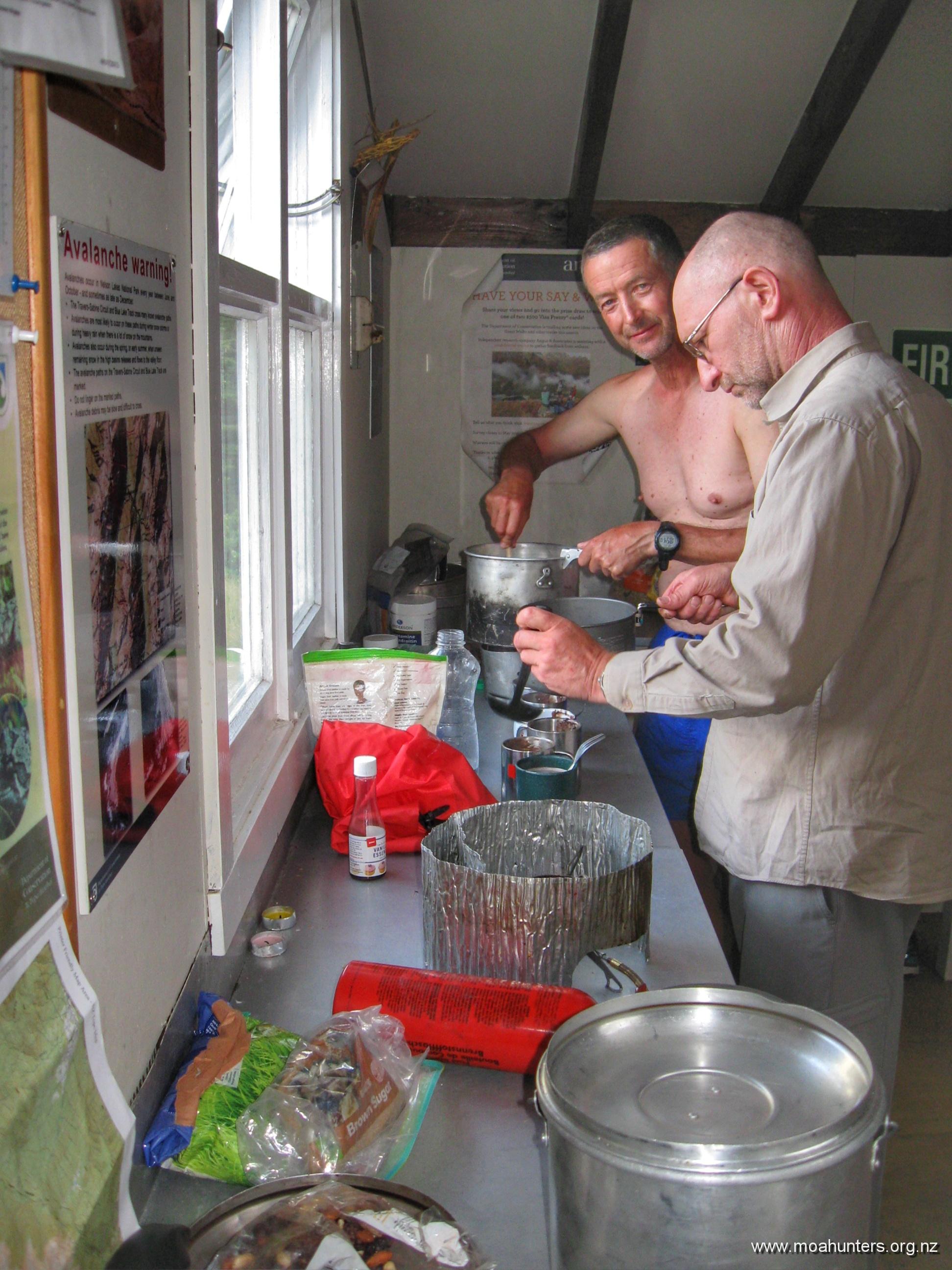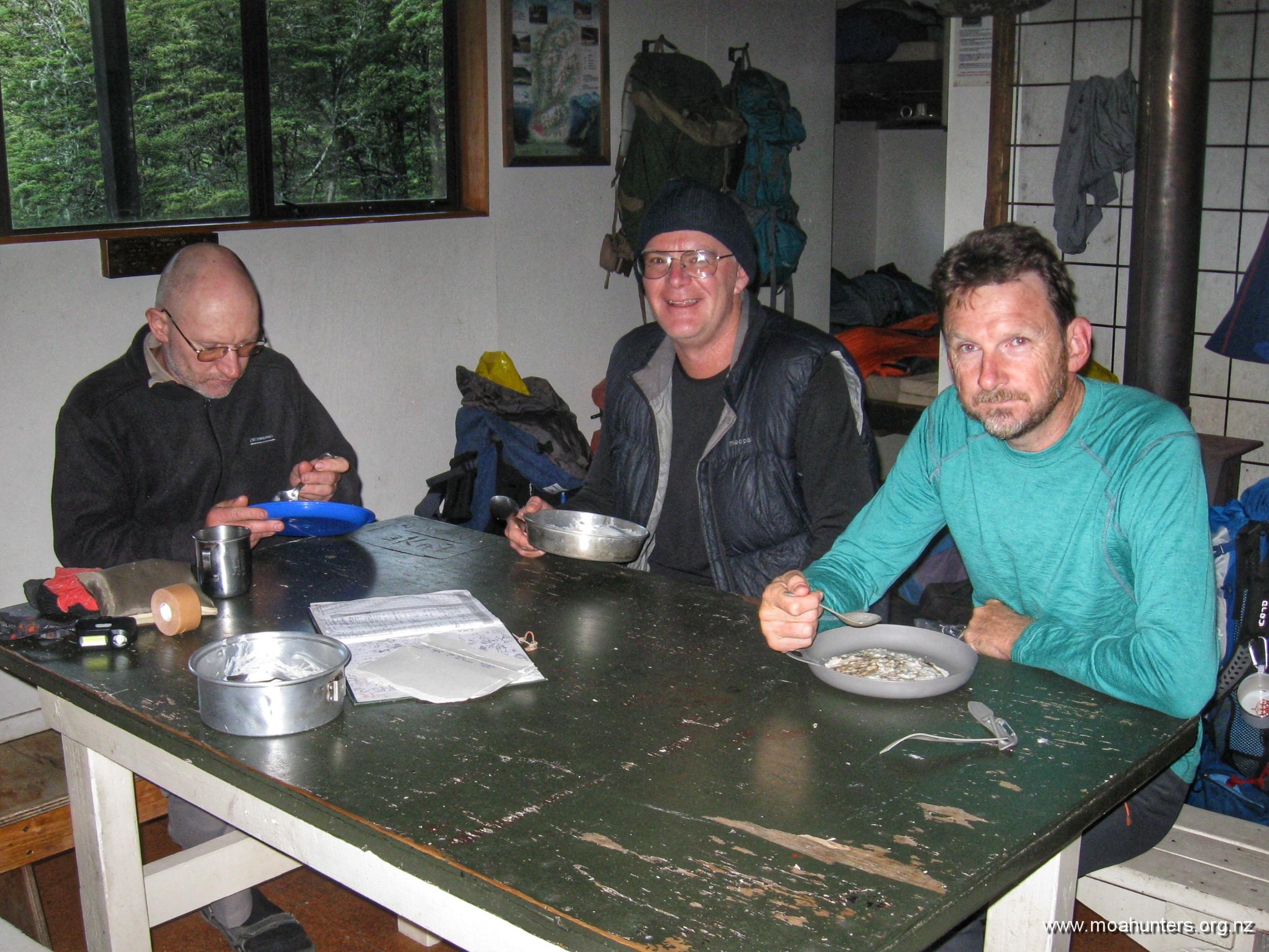 By 3:00pm however, our stomachs finally informed us we had earned a proper feed. The moa men congregated inside the spacious John Tait hut for lunch, enjoying a well earned break.